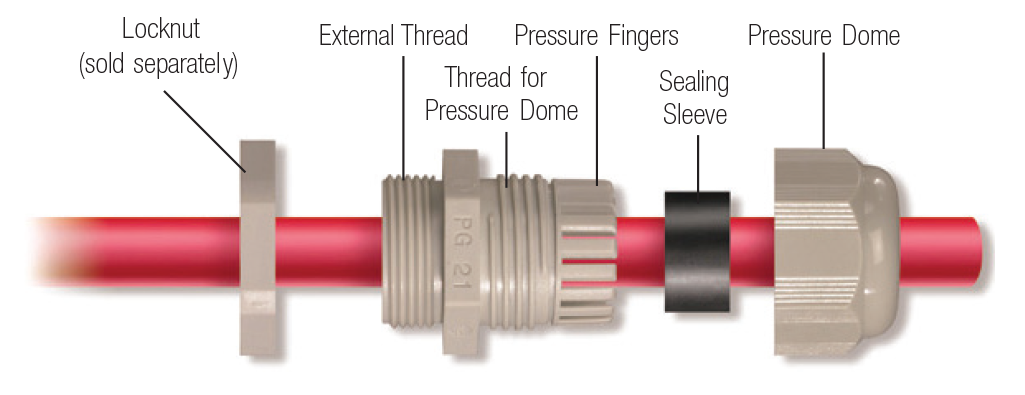 Liquid tight strain relief - cable gland for PG21 thread. Click for Data Sheet or Click for Full Catalog< Product photo may not be exact.