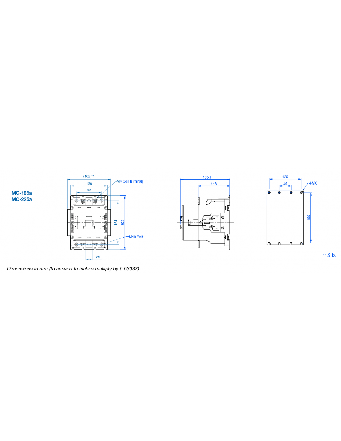MC-185A-500V MC Series Contactors - 225AF Frame