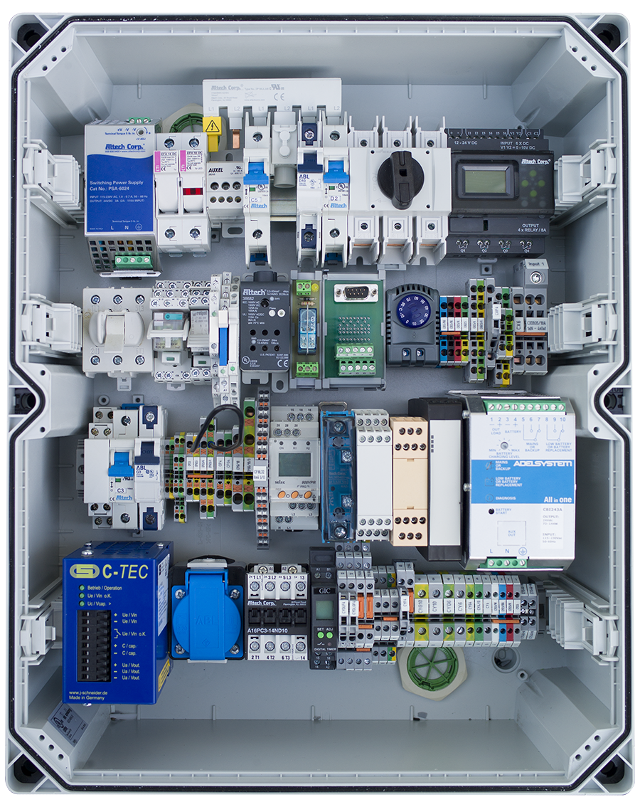 The Altech product line includes miniature circuit breakers, busbars, DC-UPS devices, digital panel meters, DIN rail terminal blocks, printed circuit board terminal blocks, contactors, industrial relays, motor disconnect switches, pin & sleeve devices, receptacles, foot switches, relay modules, safety relays, slimline relays, solid state relays, push buttons & pilot lights.