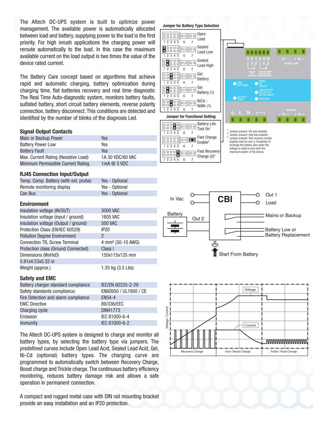 - Signal output (contact free) for fault battery state