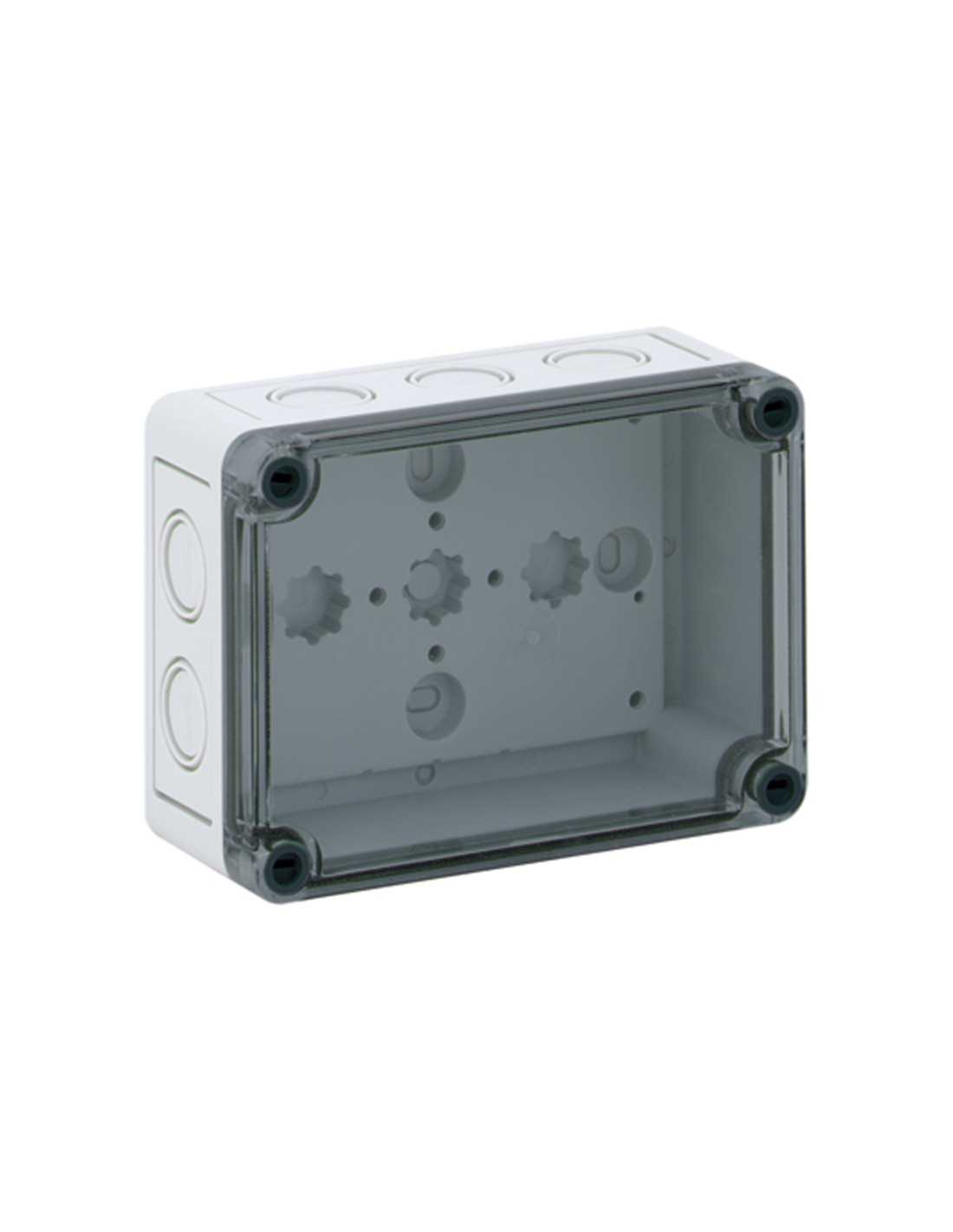 | Enclosure, Polystyrene, Gray with tinted transparent cover, Metric knockouts |
