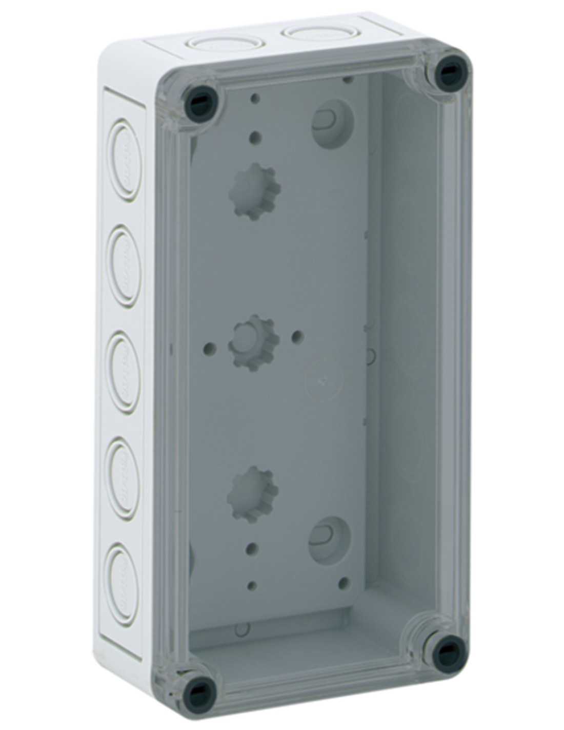 | Enclosure, Polystyrene, Gray with tinted transparent cover, Metric knockouts |