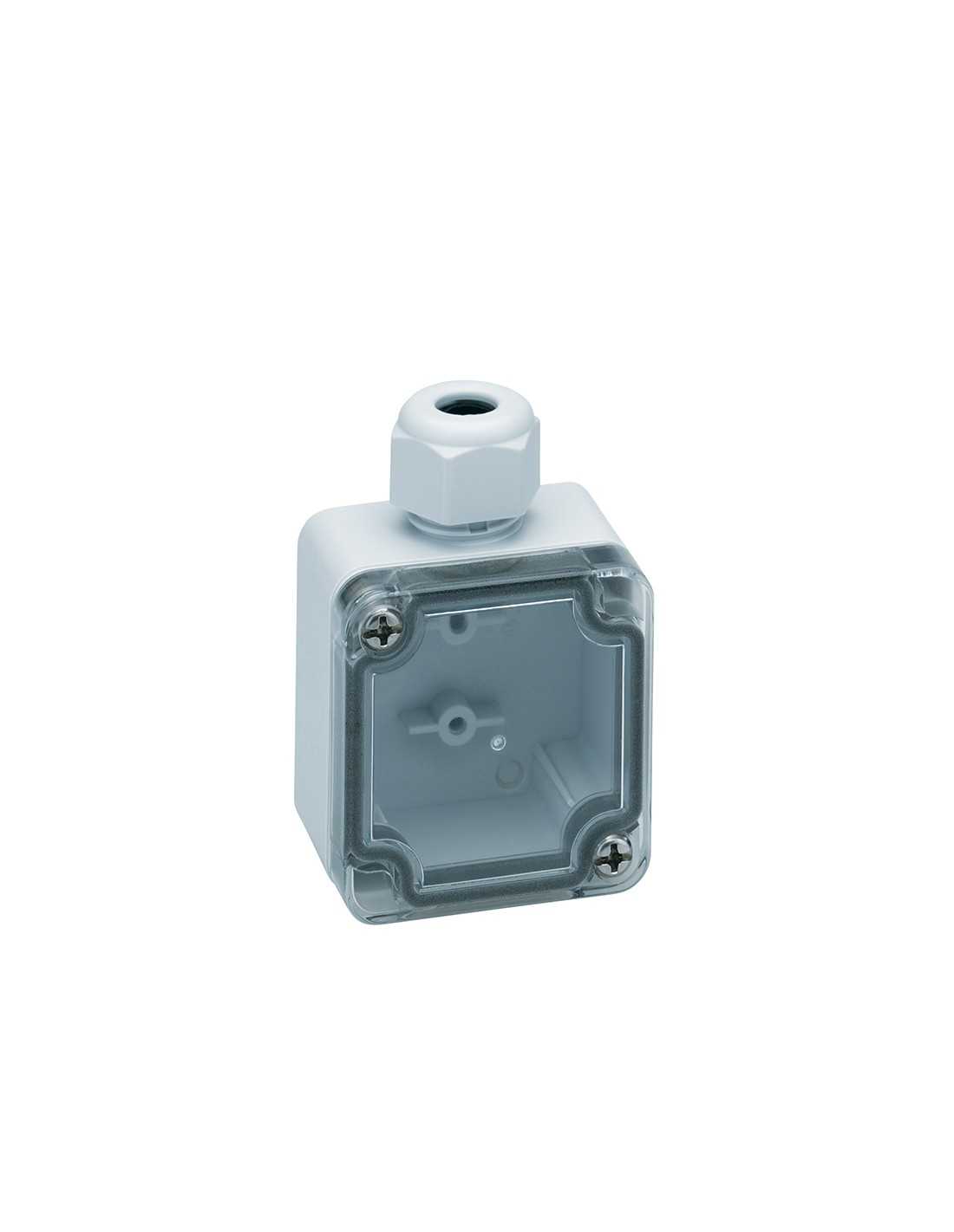 | Enclosure, Polycarbonate, Gray with transparent cover, Integral cable gland |