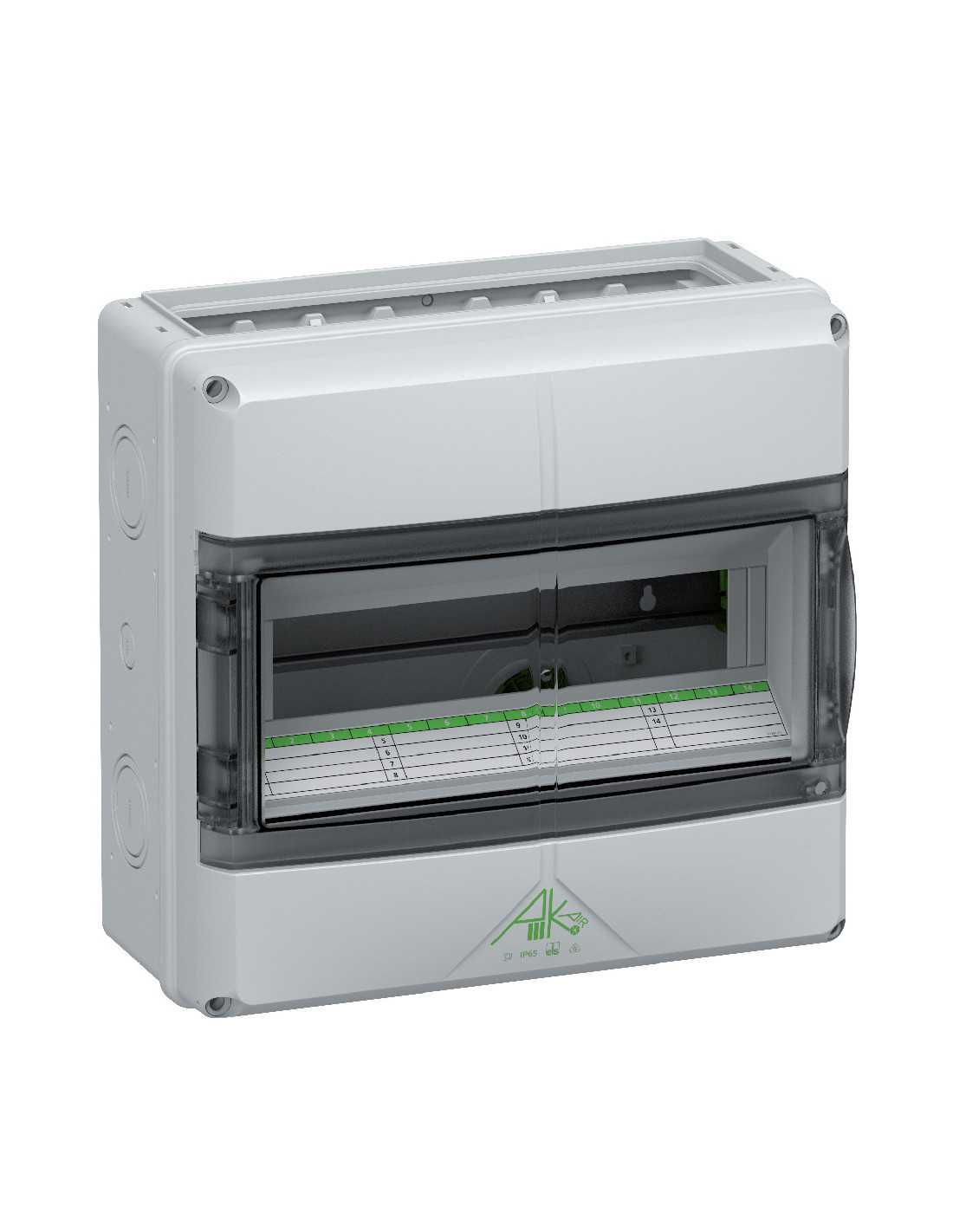 Enclosure with access door for up to 14 pole DIN Circuit breakers, Polycarbonate, Gray, Metric knockouts Flange end walls