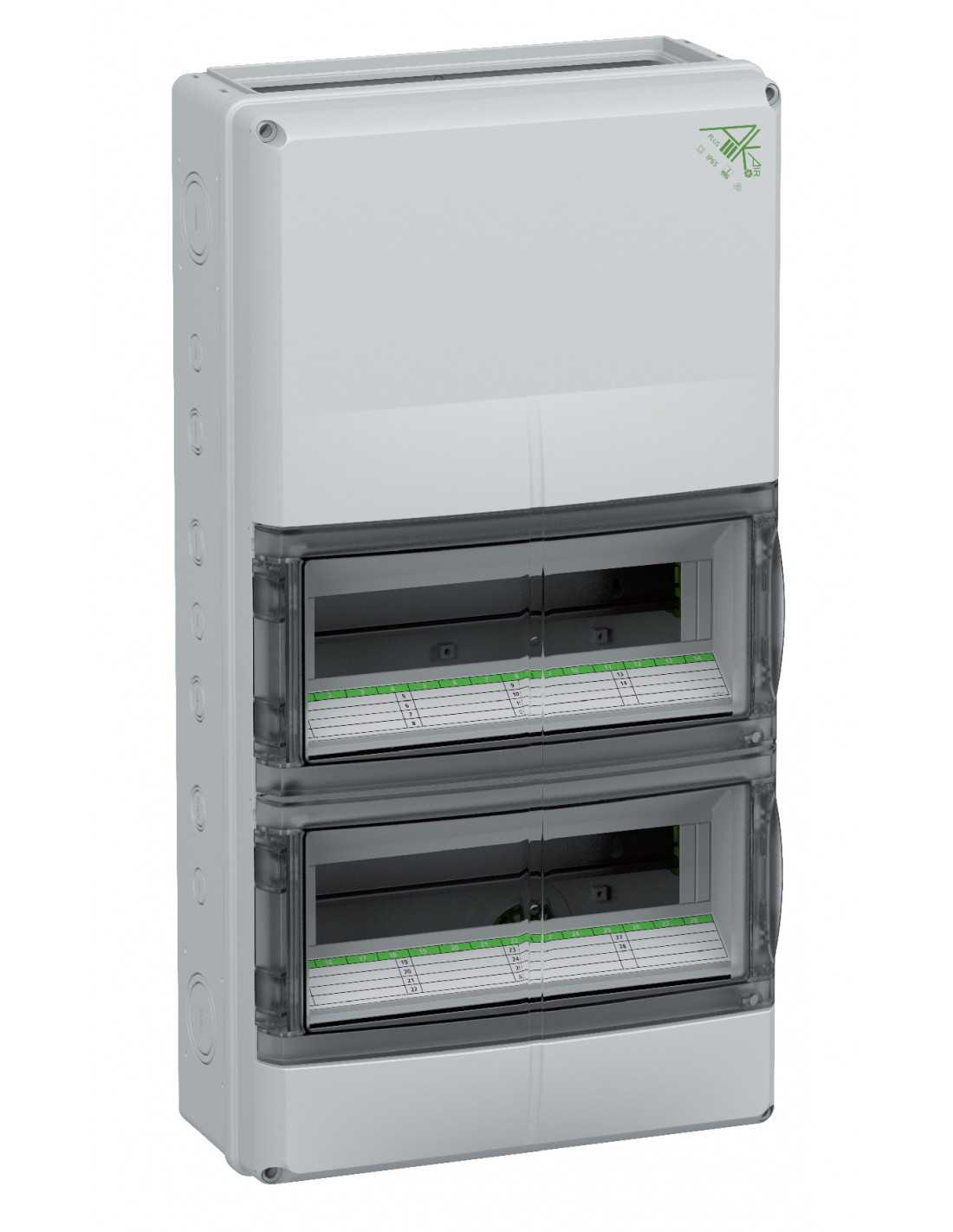 Enclosure with access door for up to 28 pole DIN Circuit breakers, Polycarbonate, Gray, Metric knockouts Flange end walls